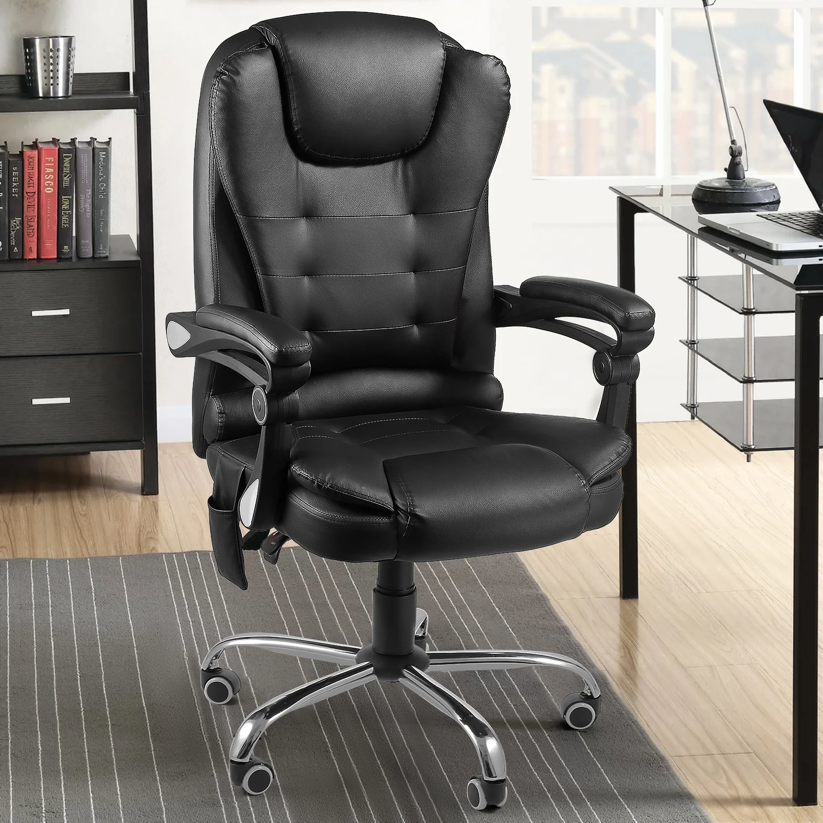 Executive Office Chair with Massage Home Office Desk Chair Lumbar Back Support Leather Computre Chair, Black